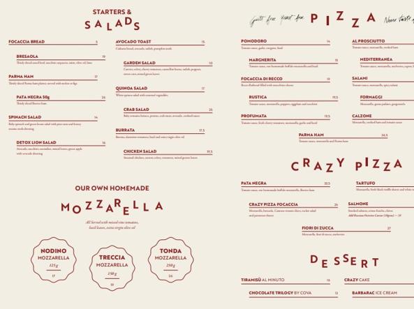 Menuù Crazy Pizza