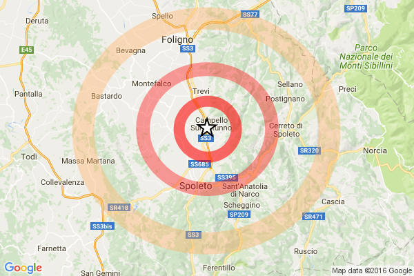 L’epicentro di questa ultima scossa di magnitudo 4.7 è stato a 53 km da Perugia, 65 da Terni e 85 dall’Aquila. Già si sono registrate 4 lievi repliche di magnitudo 2 o 2.1.