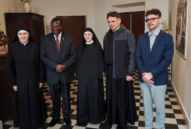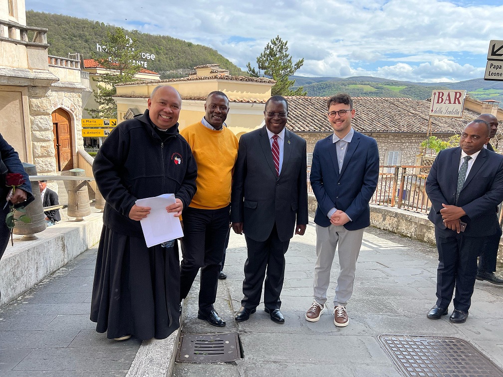 Durante la visita, il Dr. Mpango ha incontrato la Badessa del Monastero di Santa Rita, Suor Maria Grazia Cossu, la Vicaria Suor Giacomina Stuani e il Priore degli Agostiniani di Cascia, Padre Juraj Pigula. Insieme hanno condiviso momenti di intensa spiritualità e profonda comunione.
